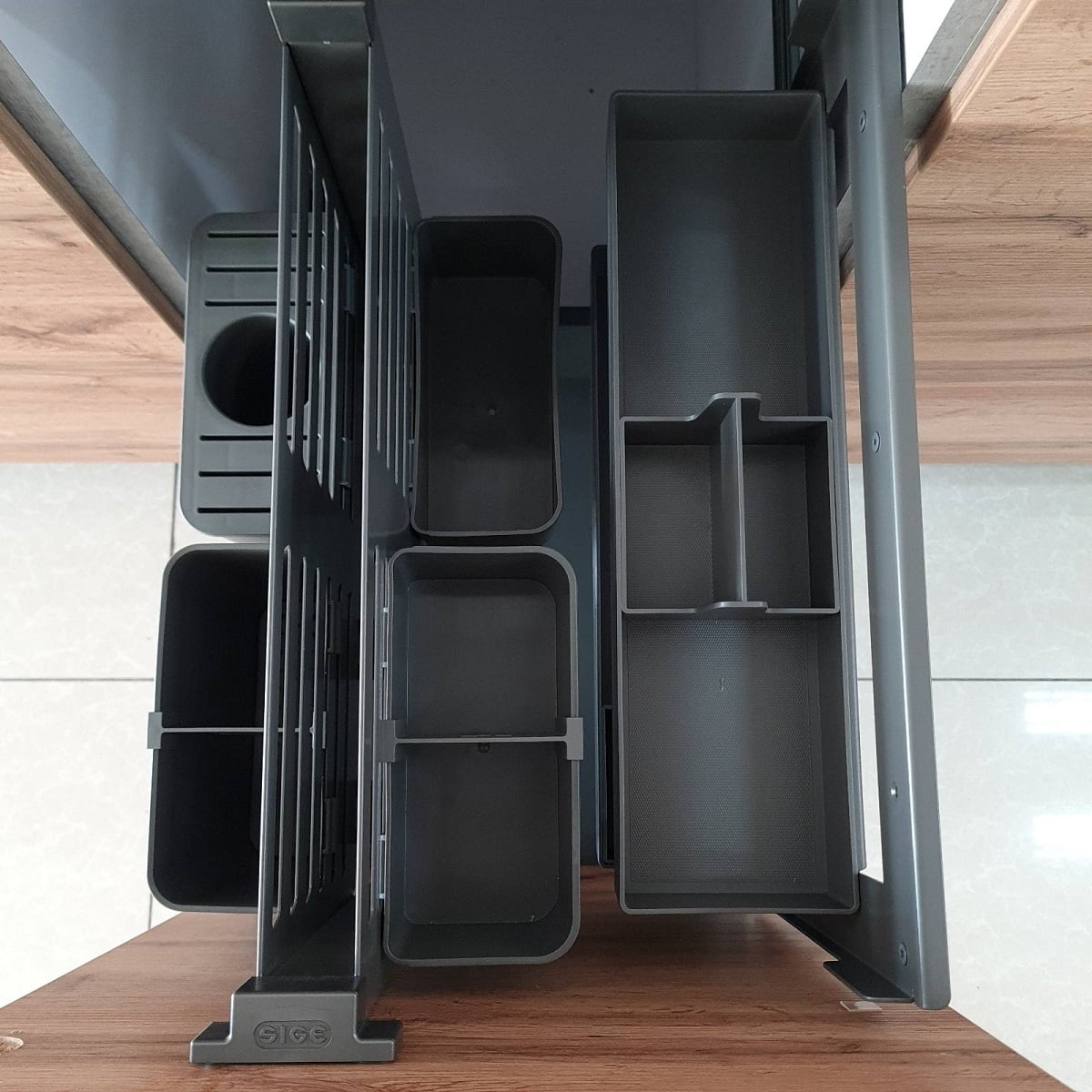 У обоих элементов все пластиковые контейнеры съемные, что обеспечивает возможность перенести контейнер вместе с содержимым на рабочую поверхность кухни. В общей сложности речь идет о 6 контейнерах: 4 от 094C и 2 от Sous-Chef Smart.