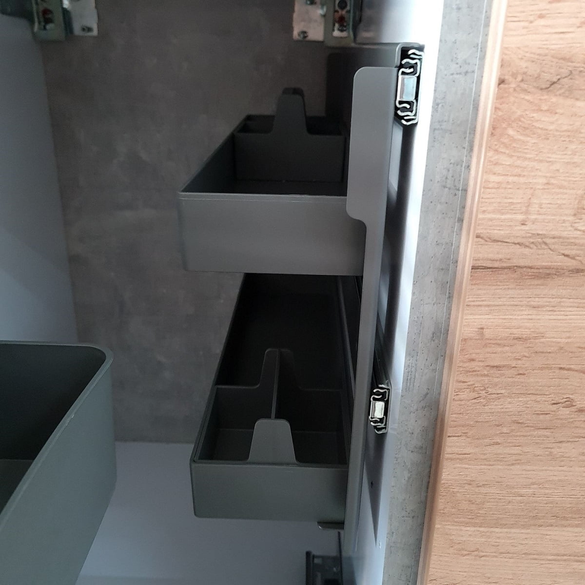 Комплект идеально подходит для заполнения корпусов 450 и 500 мм. 094С устанавливается в ящик глубиной 500 мм, а Soush-Chef Smart на одну из боковин корпуса.